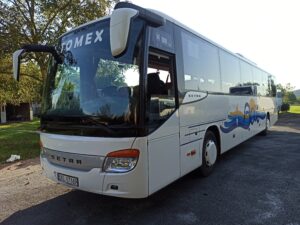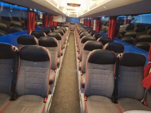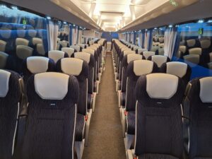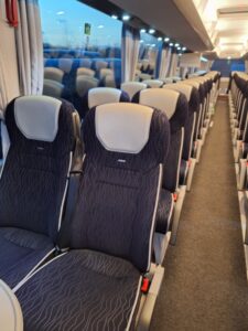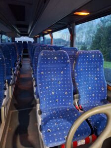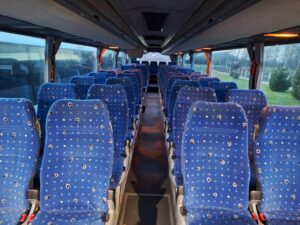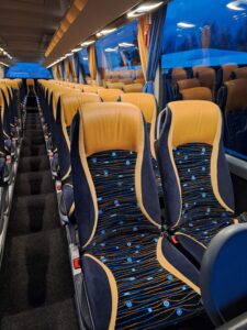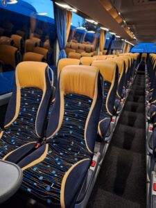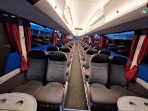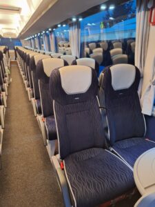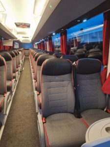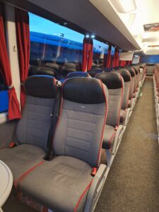 - komfortowe fotele Setra Voyage (składane stoliczki, podnóżki, siateczki, podłokietniki)